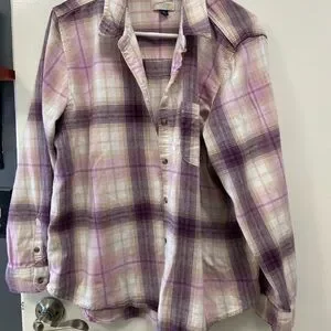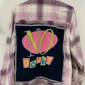 Pink long sleevePlaid Shirt with No Doubt Graphic handsewn w love Xlarge