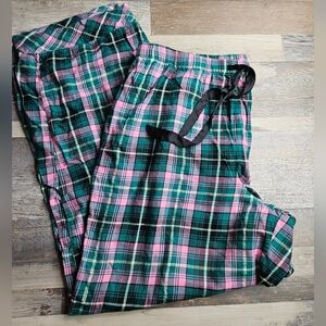 Victoria's Secret Women's XL Flannel PJs Set Green Pink Gold Plaid Sleepwear