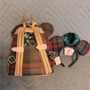 Adorable plaid mini backpack with matching Disney ears. Features red and green design. Perfect for any Disney fan!