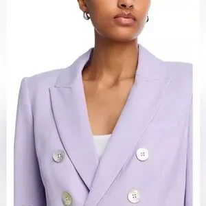 Absolutely gorgeous VERONICA BEARD NEW MILLER DICKEY JACKET. New with tags. Looks amazing on person. $748. Stylish light purple blazer by Veronica Beard. Features a tailored fit and elegant button details. Ideal for professional and casual settings.