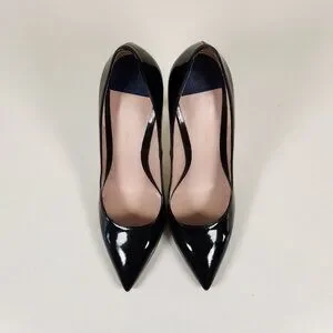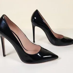 Stuart Weitzman Black Patent Pointed-Toe Stiletto Pumps - Sz 9