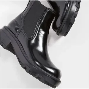 NIB Rag & Bone Shaye Platform Chealsea Bootie Polished Leather Black Size 8