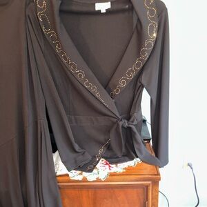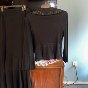 2 PIECE SET! Size 14 Chic black jacket with gold subtle gold detail. Ideal for versatile styling. Also has long maxi black skirt to go with it! From a Beautiful Boutique in Florida-