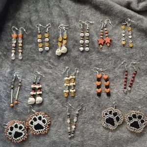 Elegant Beaded Earrings Set - Orange, Black, Silver