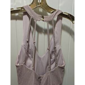 Soieblu Glitter Blush Pink Silver Shimmer Halter Strappy Party Mini Dress Size S
