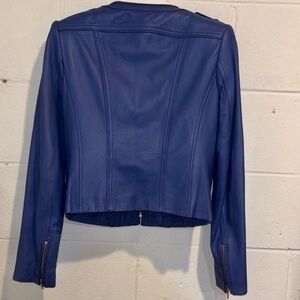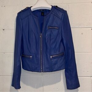 White House Black Market leather motorcycle jacket periwinkle blue zip up