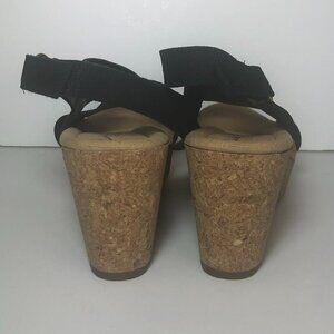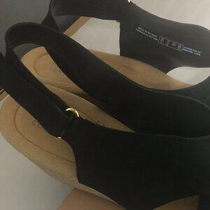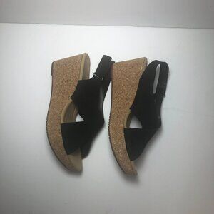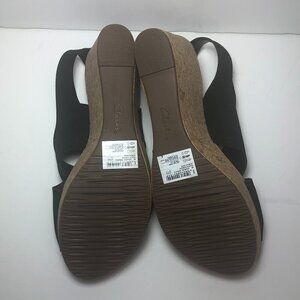 CLARKS Collection Wedge Sandals Women's Size US 11 Black Slingback Leather Annadel Eirwyn