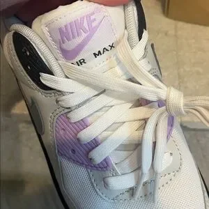 New!! Nike Air Max 90 women's white and purple sneakers. Brand new with no original box size 8.5. 100% authentic! So cute, comfy and trendy!! Bundle and save!!! Make an offer:)