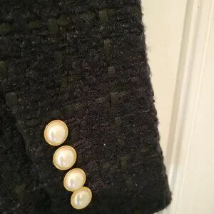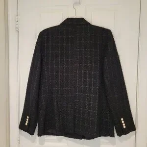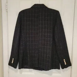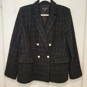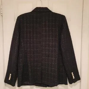 ANN TAYLOR TWEED Double-Breasted BLAZER. Black, size 10. Pearl and gold buttons on front and sleeves. 2 front pockets. Perfect for autumn, winter, spring and even a cool summer night. Lined. Looks rich and luxurious. Worn once. EXCELLENT CONDITION. Wear to office or a casual brunch. Look sophisticated and get lots of compliments.