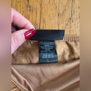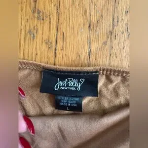 This is an amazing ultra-suede y2k does 1970s strapless top made in the USA by Just Polly New York. Made of a brown / caramel color material, it has asymmetrical handkerchief hem and adjustable side ties that give it that perfect boho-meets-Y2K fairy core silhouette. Overall in great vintage condition with no major flaws to note - marked a size large with measurements in photos - has stretch - should fit between a M-L.