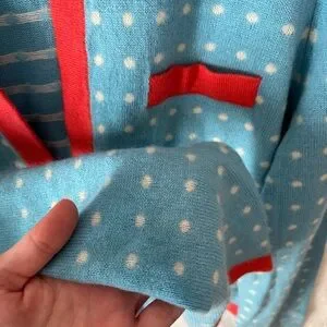 J. McLaughlin 100% Cashmere Dottie Seabreeze Cardigan Blue & Coral polka dot