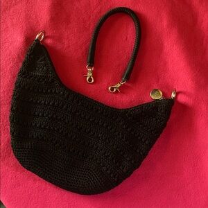 Black crochet hobo shoulder bag by The Sak