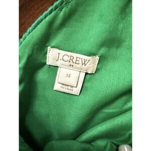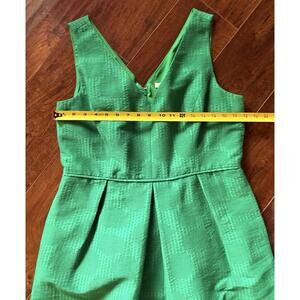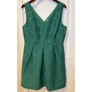 J.Crew Jacquard V-Neck Dress Size 14 Dublin Green Pleated Skirt Cotton