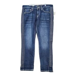 Cruel Denim Rhyon Straight Jeans Women 30/9 Short Embroidered Mid Rise Boyfriend