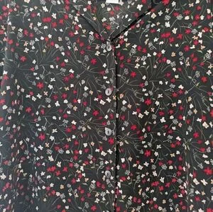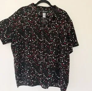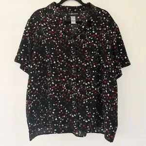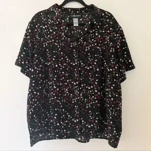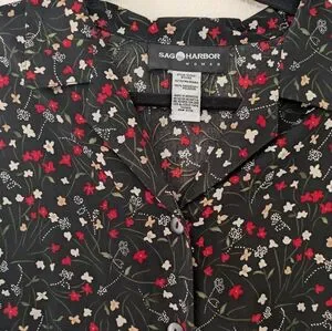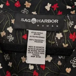 Vintage Sag Harbor Black Floral Button Up Collared Top sz 1X 90s Casual