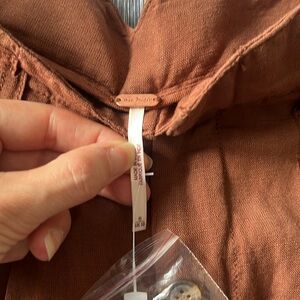 FREE PEOPLE Calla Linen Trouser Short Spiced Pecan Size 6 New with Tag