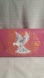 Beautiful pink Tuscany Italian Leather wallet has been painted with a white Dove. I Cor. 13:13 talks about faith, hope and love which is hand lettered underneath the Dove with its intricate details painted in black. 24 karat gold paint is used to create fancy doodles around the Dove. This wallet is new without tags and has beautiful pink leather. It measures 7 1/4" x 3 1/2" x 1". New with inside papers still in tact. Retail of the wallet before painting is $102