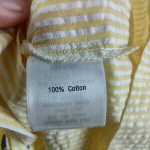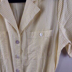1980s Vintage Yellow Cotton Striped Seersucker Day Dress Size Small