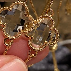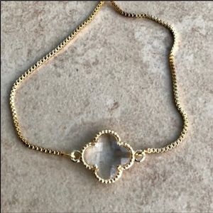 dainty clover bracelet in gold plated adjustable bracelet #🌿dainty gemstone crystal date night mother daughter artisan handmade clover quality jewelry affordable gift set new wife sexy rhinestone crystal 🌿 leaf four 4 leaf clover flower rhinestones sparkly bracelet radiant cut diamond cubic zirconia