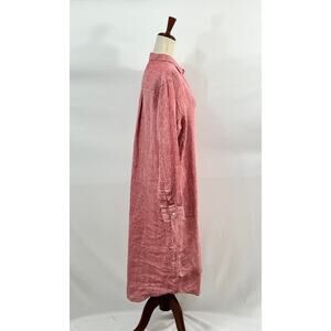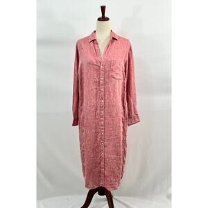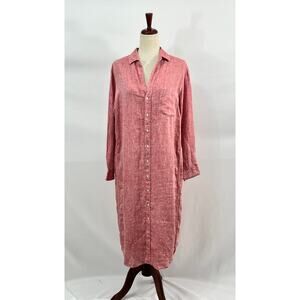 Women's dress by FRANK & EILEEN. Size M Medium. Rory style, Pinkish Red color, 100% linen. Button front, long sleeve. Good condition, no stains, holes or pilling
