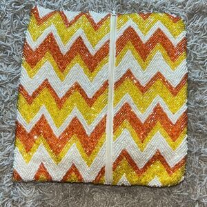 Gorgeous Moyna Beaded Clutch Satin Lining Orange, Yellow, And White Evening Bag, Zipper