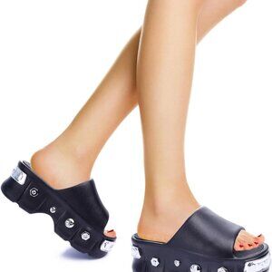 Features: These slide-on platform sandals are all about style and comfort. The wide elastic strap ensures a cozy yet secure fit, and the 6.5CM latex insole gives you plush support, perfect for all-day wear. The open toe design lets you show off your favorite pedi, and the non-slip outsole keeps you confident whether you're beach-bound or city strolling.