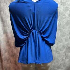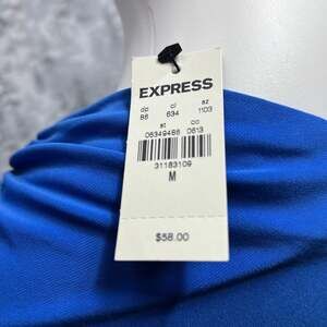 This EXPRESS blue stretchy peplum top features a flattering V-neck and elegantly draped short sleeves, perfect for a chic and comfortable look. The peplum silhouette accentuates the waist, while the stretchy fabric ensures a forgiving and comfortable fit. Ideal for both casual and dressier occasions. New with tags, this top is in pristine condition, ready to add a vibrant pop of color to your wardrobe. Originally priced at $58.00.