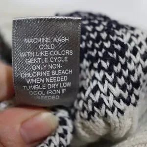 Marled Black White Crew Neck Star Sweater Medium Knit Pullover Casual Stylish