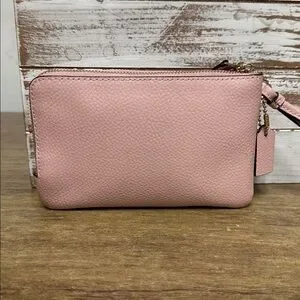 Coach great shape double corner light pink pebbled leather dual zip wristlet