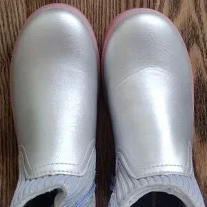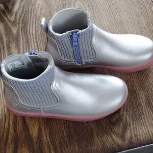 Stylish silver ankle boots with pink soles. Features a ribbed ankle design. Youth US 1M, UK (13)