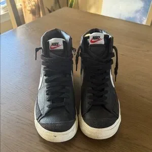 Nike high-tops in black with white accents. Features a sleek design and durable laces.