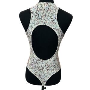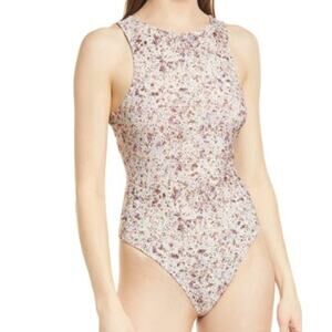 New ~ OPEN EDIT ~ NORDSTROM ~ Flower Fields High Crewneck Cutout Bodysuit S