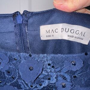Its a MAC DUGGAL FLORAL APPLIQUE BOAT NECK SHORT SLEEVE GOWN 67711 MIDNIGHT BLUE. Elegant cap sleeve boat neck evening gown with an illusion neckline, floral applique and bead embellished lace overlay, and a hand-beaded belt at the natural waist. Floral Applique Fabric (100% polyester) Fully lined body; unlined sleeves Boat neckline Short cap sleeves Hand-beaded waist detailing Concealed back zipper Floor Length Available in Midnight.
