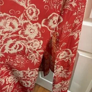 LuLaRoe Red and Cream Floral Boho Maxi Vest, Size M