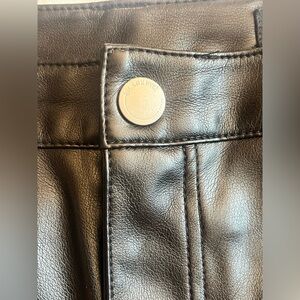 Stylish black faux leather pants with a wide-leg design. Perfect for a chic look.