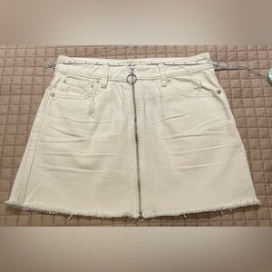 NWOT {We The Free} by Free People zip it up mini white distressed denim skirt.