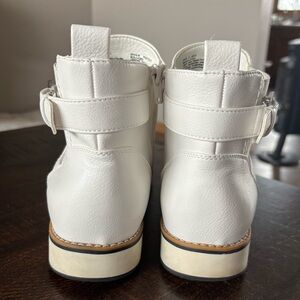 Chic ivory white ankle boots with stylish buckle. Ideal for casual wear. Worn once, and these are in great condition. Purchased from Kohls. Check out all my other listings. Make a bundle and save big. Thanks for looking!