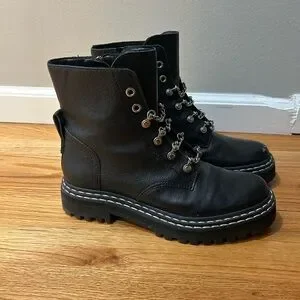 Black Combat Boots Womens 8M Metallic Vince Camuto Biker boot