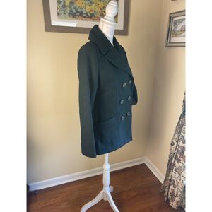 Perfect cozy classic dark green wool blend peacoat