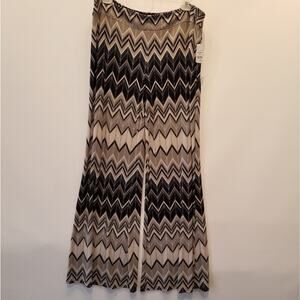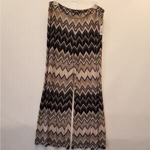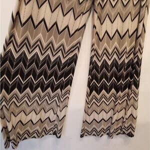 Joseph Ribkoff New Zig Zag Palazzo Pants Flowy Wide Leg Black Grey Taupe Plus 18. New with tags. Stretch Joseph Ribkoff new palazzo pants. High end Las Vegas Retailer inventory purchase. Measures laid flat approx 19 inches waist, 23 hips, 12 rise, 32 inseam, 15 leg width. Retail Price $218. Plus Size 18