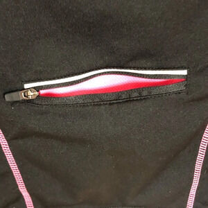 Work out jacket black and pink excellent condition. Long sleeves. Perfect for a cool morning. Pit to pit is 16. Shoulder to him is 23 inches.