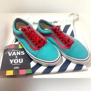 Brand new custom designed Vans Old School. They come in their own bag with extra laces. There is no box when you order these custom. I designed them. The design sheet is included in pics. I broke my leg and can only wear running shoes now. Sad face.