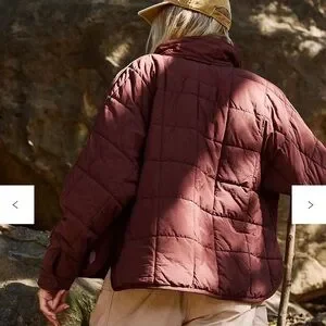 Lightly worn, down, packable jacket by free people. It is a boxy, oversized, fit. The color is more of a burgundy than what’s on the pictures.