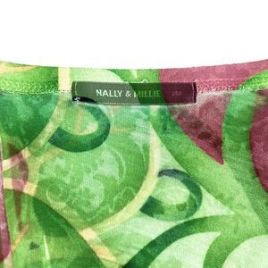 Nally & Millie floral shirt in green and pinks. Lightweight, v-neck, flattering fit and in good condition.