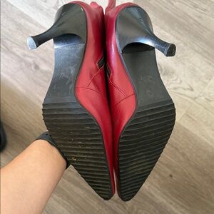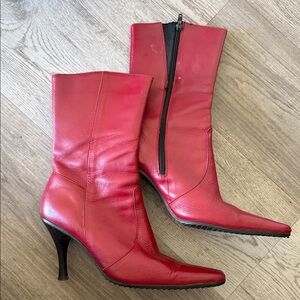 Elevate your style with these elegant red heeled boots. Perfect for making a bold statement.
