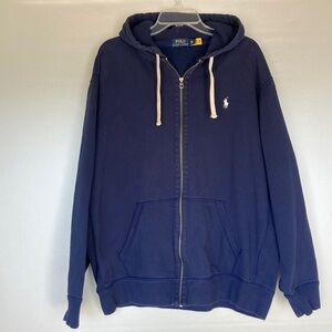 VTG Polo Ralph Lauren Hoodie Navy Sweatshirt Fleece Full Zip Thermal Hood Sz XXL