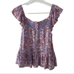 NWT Lucky Brand Phoebe Crochet Trim Sleeveless Top Lilac, Orange Small