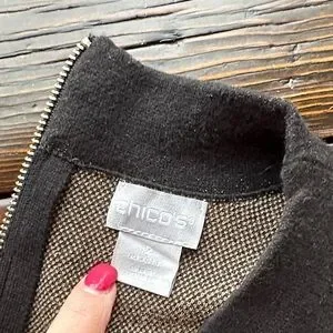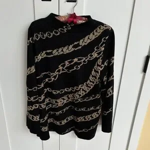 Chico's Black and Tan Chain Design Sweater Size L