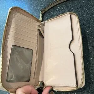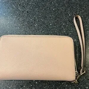 Elegant Michael Kors wristlet in a beautiful blush pinkish color. Features a studded heart design. Please see all photos for any call outs. Feel free to make an offer but please no low ball.