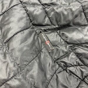 Sleek charcoal quilted jacket. Ideal for chilly days. See pictures for any imperfections and details